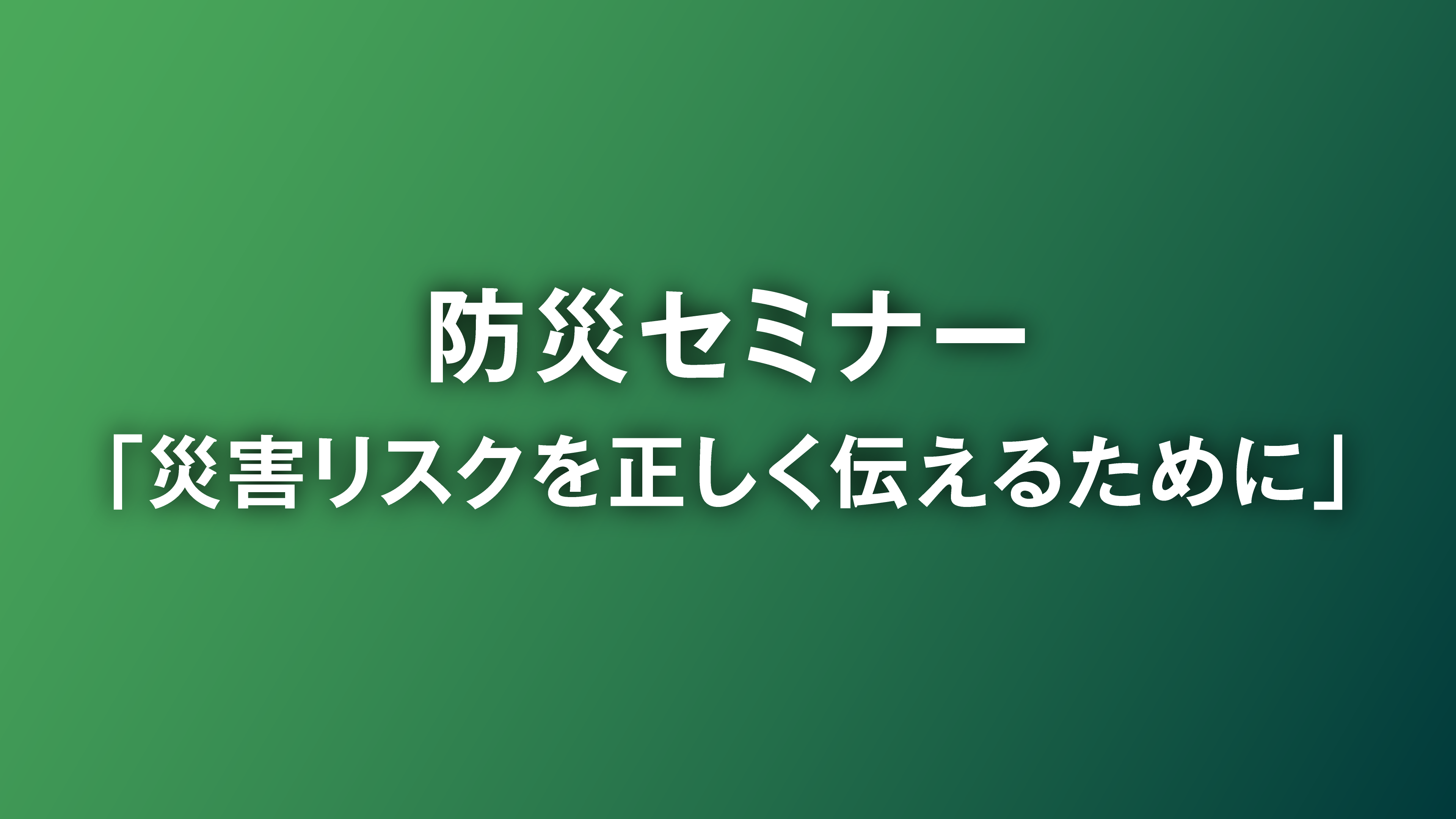 防災セミナー「災害リスクを正しく伝えるために」は終了しました。たくさんのご来場ありがとうございました。