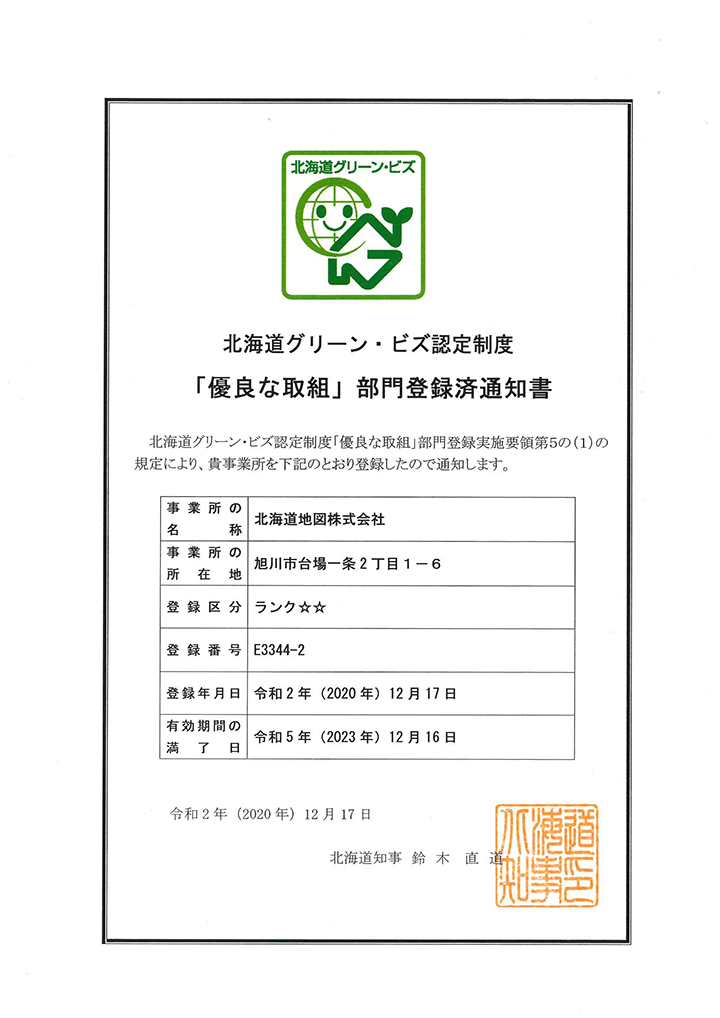 北海道グリーン・ビズ認定制度 に弊社が登録されました。
