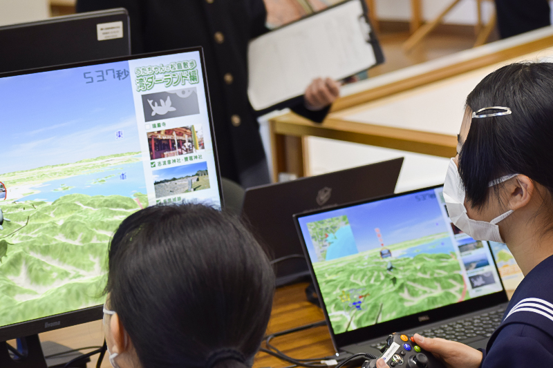 こうした授業のほか、ゆるキャラと飛行機で巡るバーチャルツアーゲームやデジタルサイネージ、スマホをかざすと写真の上に動物が飛び出して見えるARを体験していただきました。