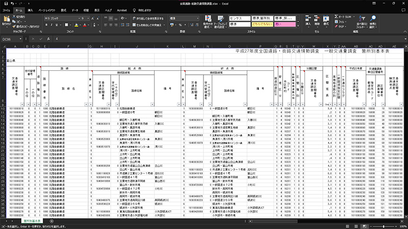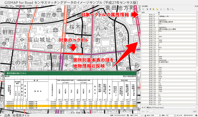 道路交通センサス(CSVデータ)とGISMAP for Road(道路ベクトルデータ)をプログラム処理で掛け合わせることを言います。