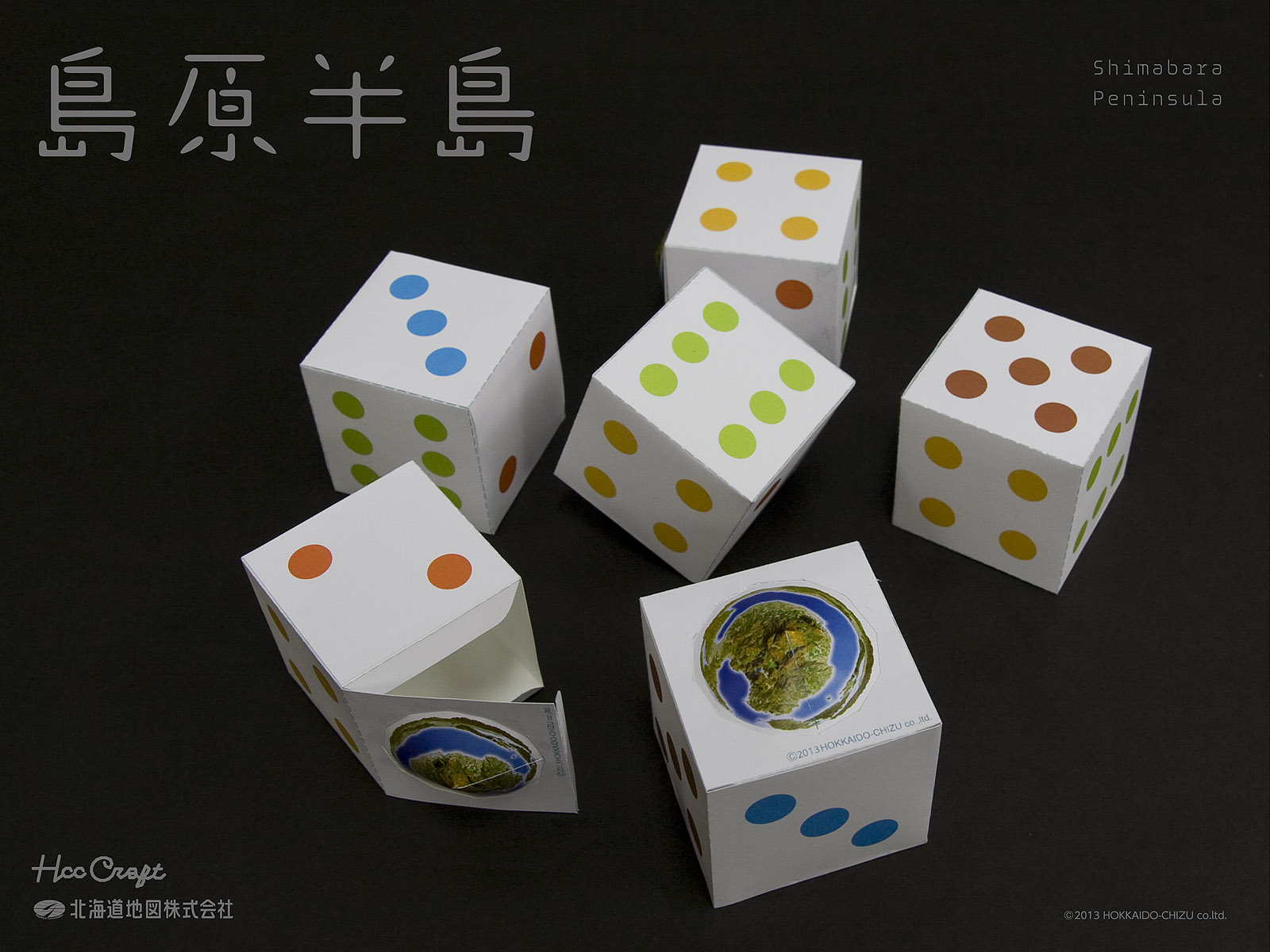 島原半島を一の目にあしらって、カラフルでかわいいサイコロに仕立てました。